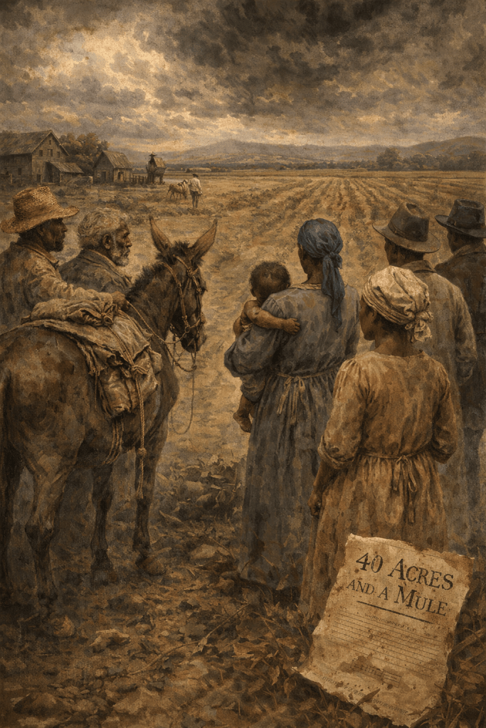The phrase “40 acres and a mule” has become one of the most powerful symbols of broken promises in American history, rooted in the aftermath of the American Civil War. It represents an unfulfilled commitment to provide formerly enslaved Black Americans with land and the means to sustain themselves economically.